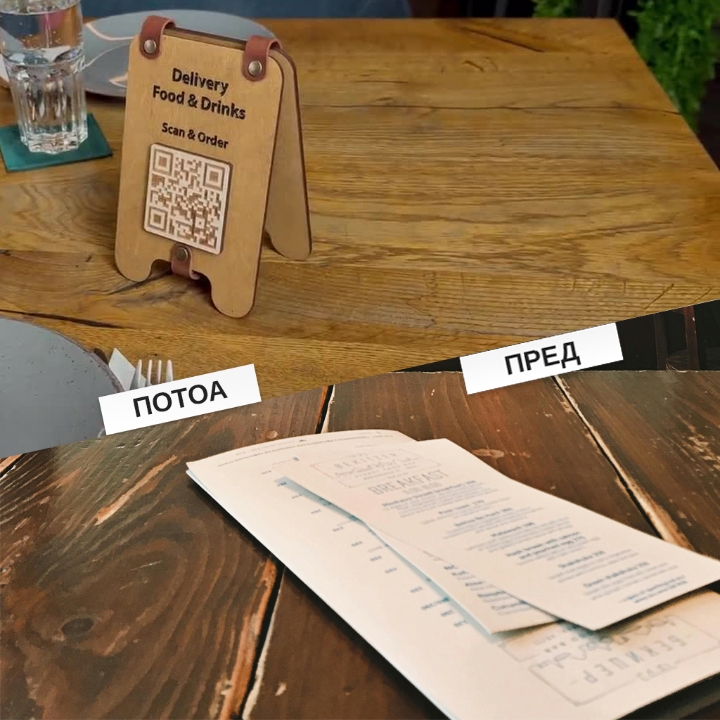 Веќе нема потреба од постојано печатење на менија. Едноставно отпечатете го вашиот QR код и користете го засекогаш. Со ова, значително ги намалувате оперативните трошоци и ја зголемувате вашата рентабилност.